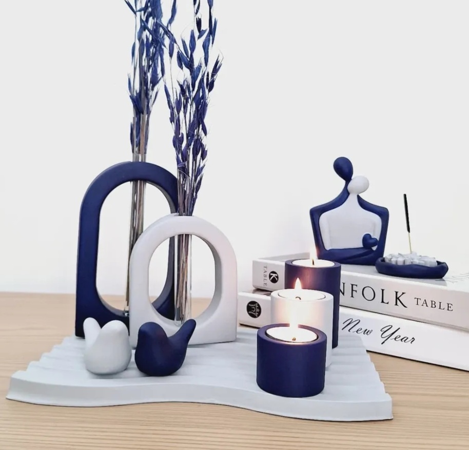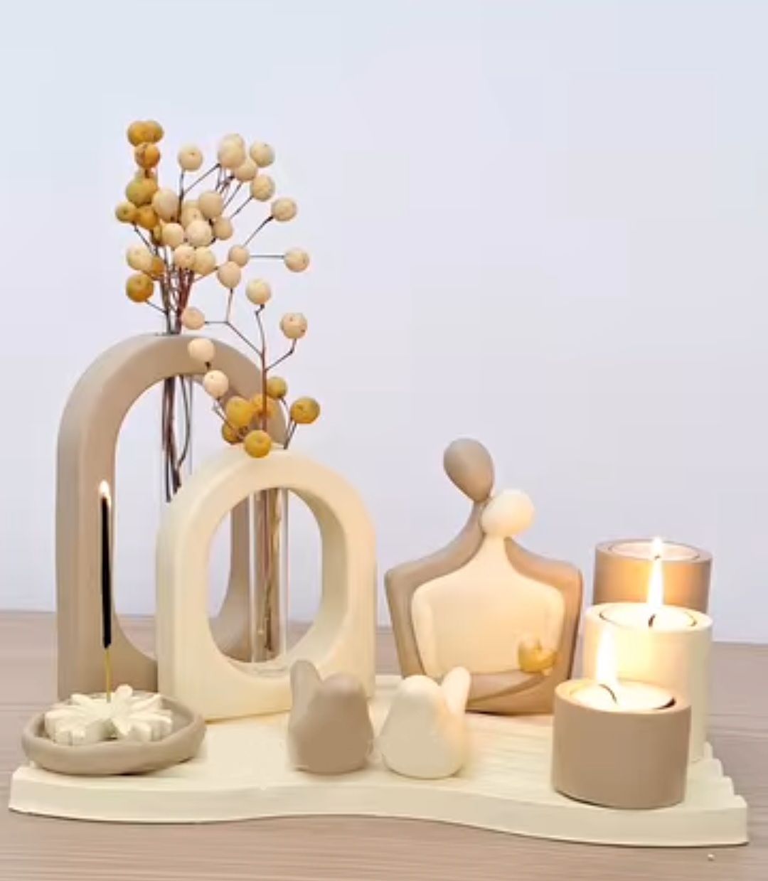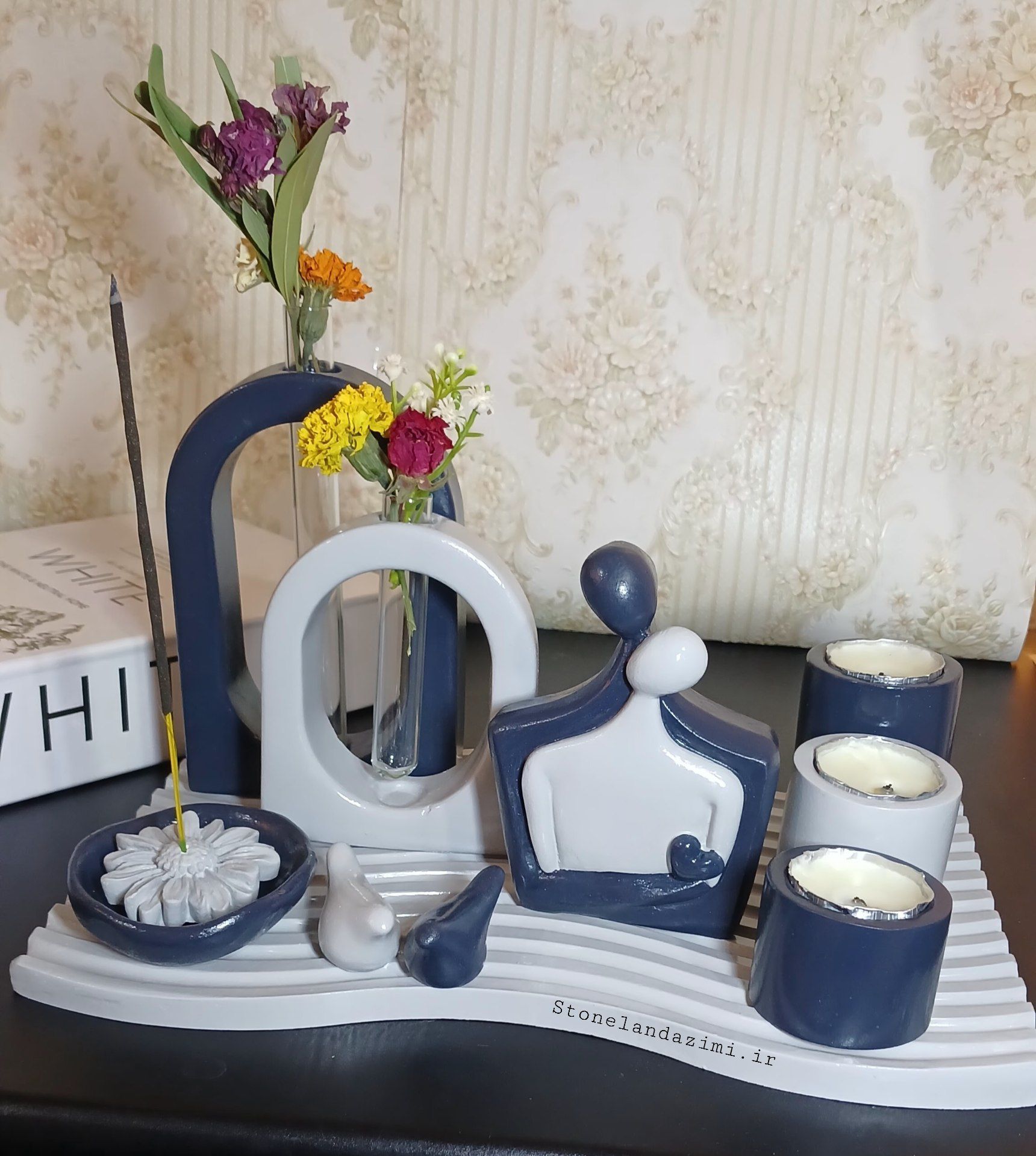 (موارد داخل ست:سینی،دوسایزگلجاهمراه شیشه،سه سایز جاشمع استوانهای،دوتا گنجشک،مجسمه همدم،جاعودی بابونه همراه ظرف زیر جاعودی)