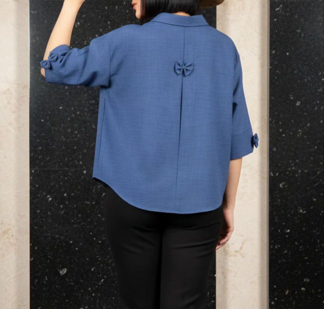 🍀 شومیز آستین پاپیونی پشت پاپیون پیله خور در 2 رنگ عالی(کرم،ابی)