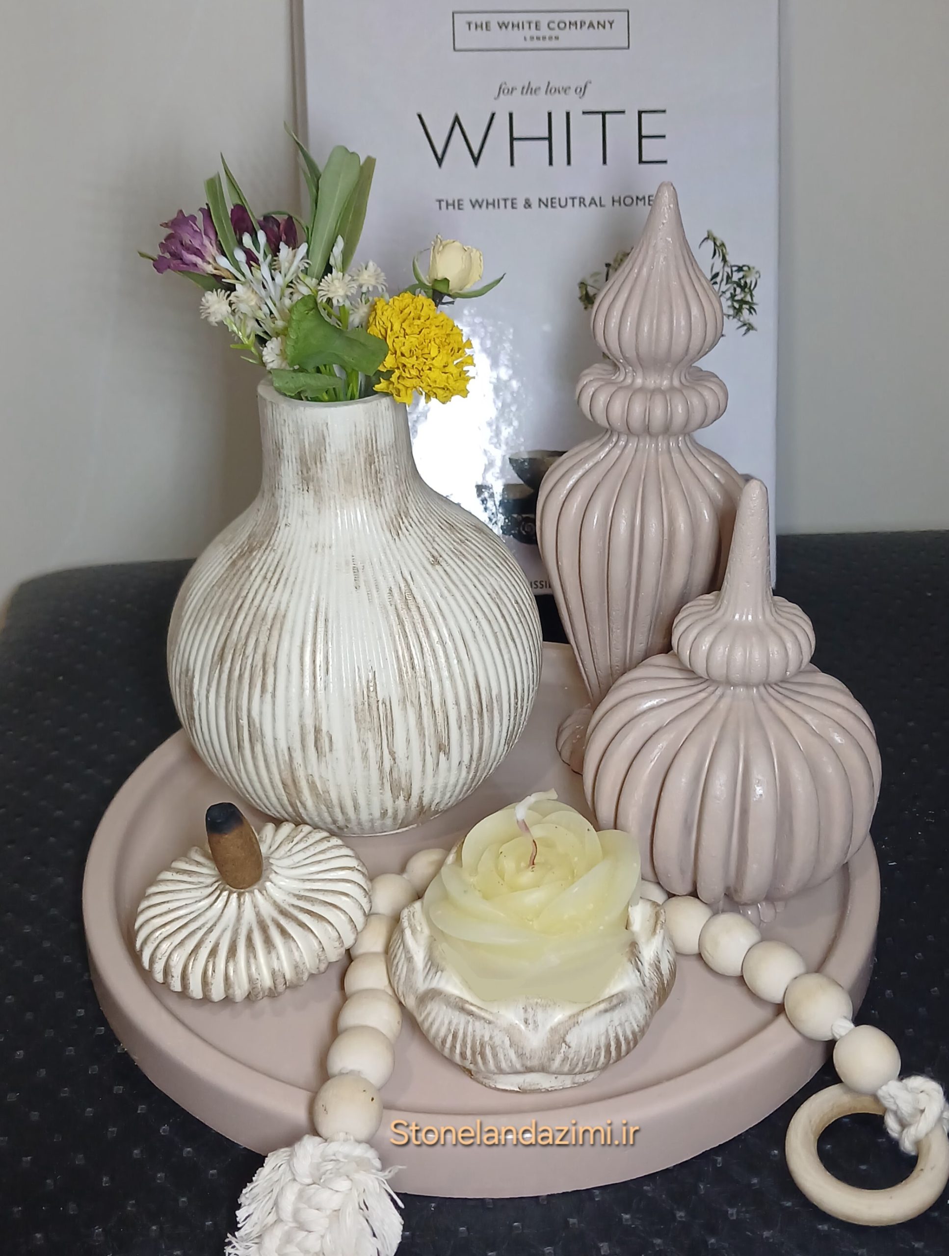 ((ست شامل: سینی گرد سنگی ، دو سایز مراکشی کوزه ای،گلدان،