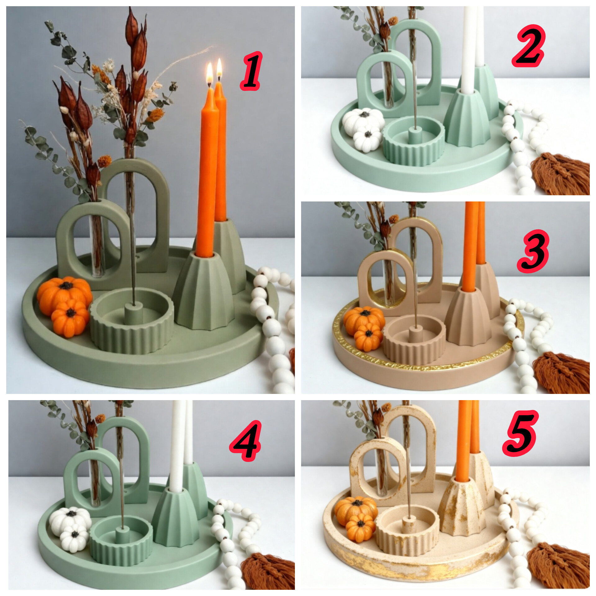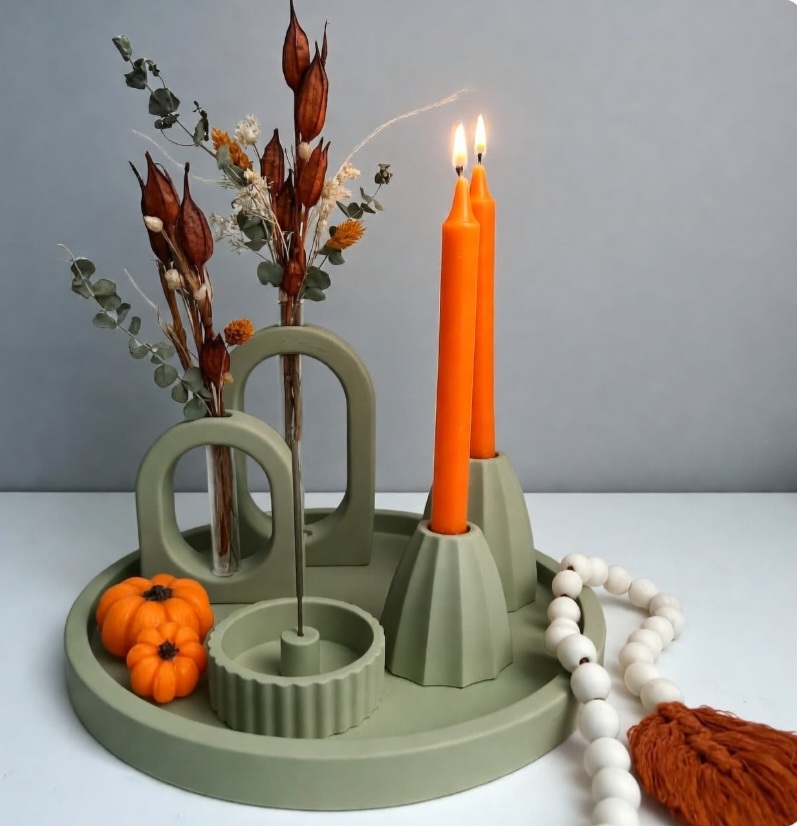 (ست شامل:سینی گرد_دوسایزگلجا همراه شیشه-دو عدد جاشمعی-و جاعودی)